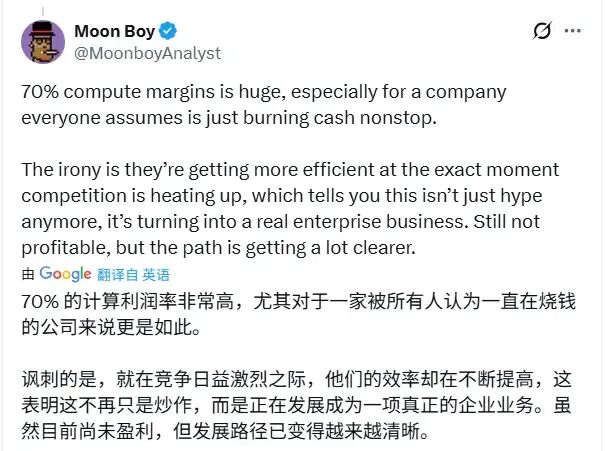 70%的计算利润率是一个里程碑,它证明AI服务可以拥有健康的单位经济模型,可以像传统软件企业一样“算得过账”。